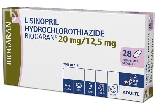 LISINOPRIL/HYDROCHLOROTHIAZIDE BIOGARAN 20 mg/12,5 mg, comprimé sécable