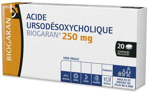ACIDE URSODESOXYCHOLIQUE BIOGARAN 250 mg, comprimé pelliculé